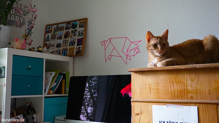 Wie fast immer fand ich die Lösung meines Dekorationsproblems auf Pinterest. Dort fand ich zufällig einige aufgeklebte Washitape Wandbilder. Washitape? Ganz leicht ablösbar, falls es dekorationstechnisch doch mal in eine andere Richtung gehen sollte (öh naja also… Schweine gehen ja eigentlich immer!) und ganz ohne Farbklecks-Gefahr anzubringen. Wer konnte dazu schon nein sagen?