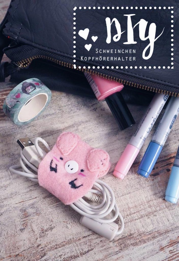 Und dann ist dein Schweinchen Kabelhüter auch schon fertig. Vielleicht wunderst du dich ja, warum auf den Fotos gar keine Kopfhörer zu sehen sind, sondern dieses blöde USB-Kabel. Tja, eigentlich besitze ich superviele Kopfhörer. Leider sind aber irgendwie alle in den Weiten meiner Taschen verschwunden, sodass ich für die Fotos die Wahl zwischen knallroten Kopfhörern (farblich so gar nicht passend) und eben diesem farblich schönen USB-Kabel hatte. 😀 Mit einem Kabel-Halter wären meine Kopfhörer sicher nicht verschwunden… haha!