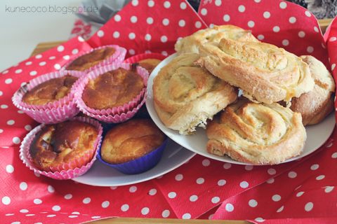 Ihr seht hier: verbrannte (und trotzdem klebrige) Mandarinen-Muffins sowie staubtrockene Puddingschnecken. Heute hab ich backtechnisch so überhaupt gar nichts auf die Reihe gekriegt.